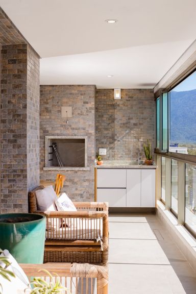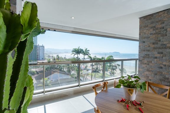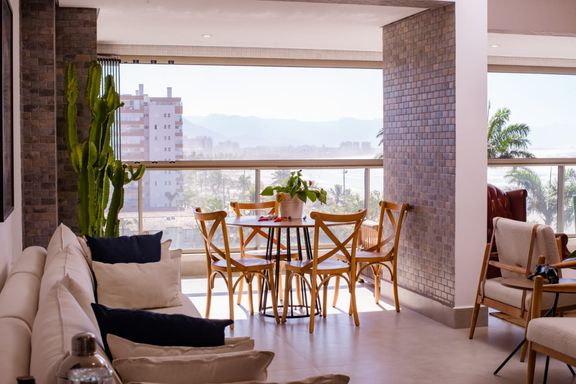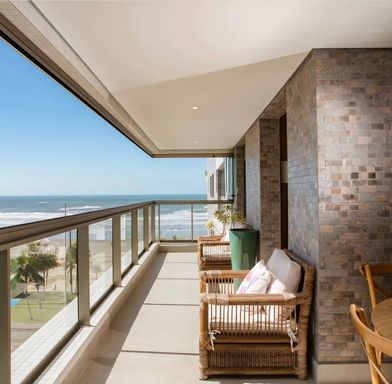 🔹 Varanda gourmet com fechamento em vidro e vista total do mar